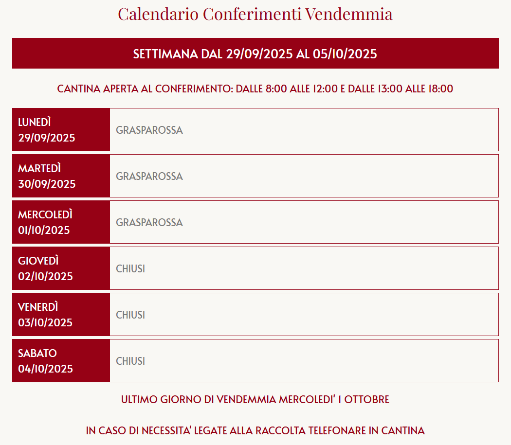ULTIMO GIORNO DI VENDEMMIA MERCOLEDI' 1 OTTOBRE